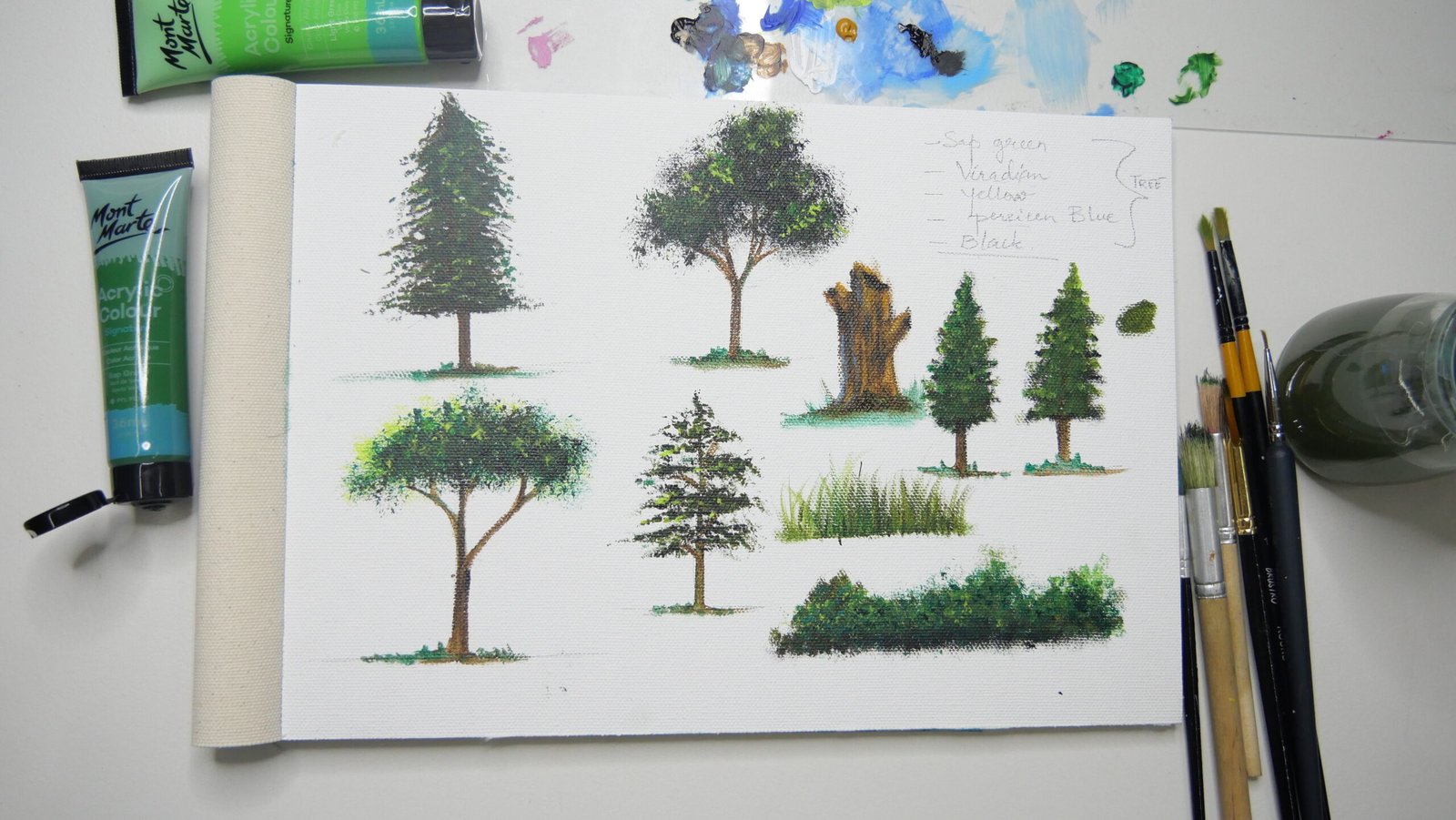 •Techniques for painting different types of trees, focusing on form, texture, and color.